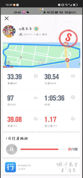 例:该用户此次运动的里程为33km,匀速为30km/h,爬升97m。由此看出,该骑友的水平相当不错,我们给予了他S评分。